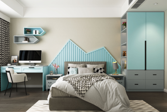 一般来说性格脾气太过暴躁的孩子在儿童房打造的时候好是少用或者是不用红色,红色会让情绪更加的澎湃,就应该给孩子挑选一些比较淡雅素净的颜色,比如说淡蓝、淡绿等,这样才有助于孩子的心态发展。