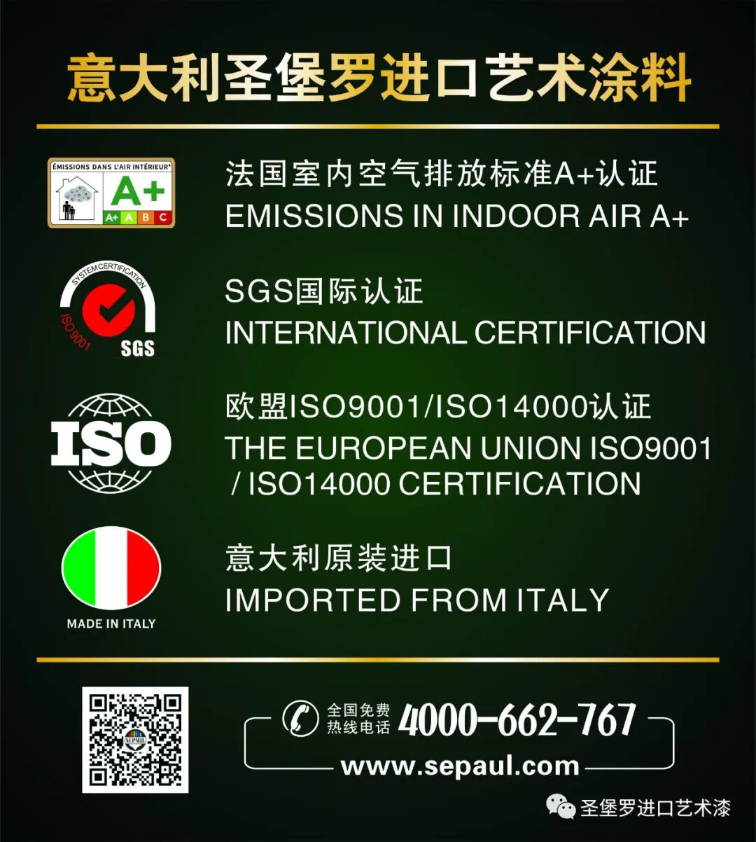 圣堡罗进口艺术涂料采用了原材料安全环保无污染。具有极强的物理吸附性能,会像活性炭一样吸附甲醛等有害化学物,家长们可以放心使用。
