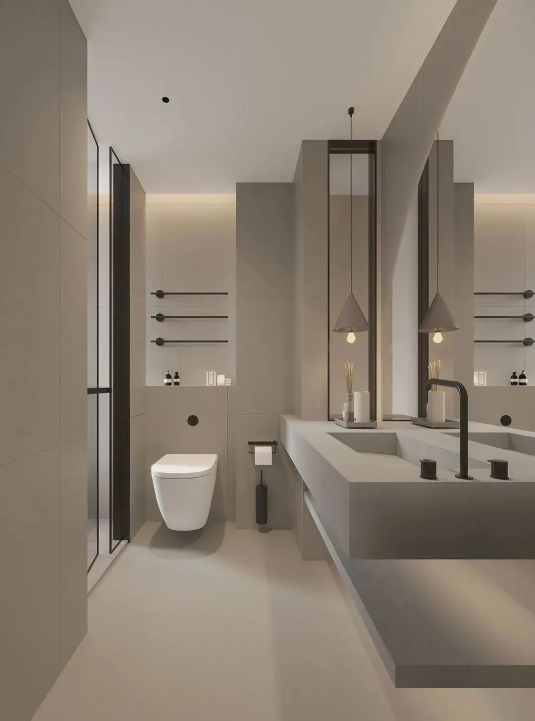 卫生间艺术涂料的还有很多种选择,比如圣堡罗的大理石纹理效果,也可以打造现代化风格的“平滑”纹理效果,甚至还能涂覆其它艺术涂料系列,还能结合定制化使用,风格样式非常丰富,营造出的空间偏向整体无缝,塑造出的风格纯粹而干净。