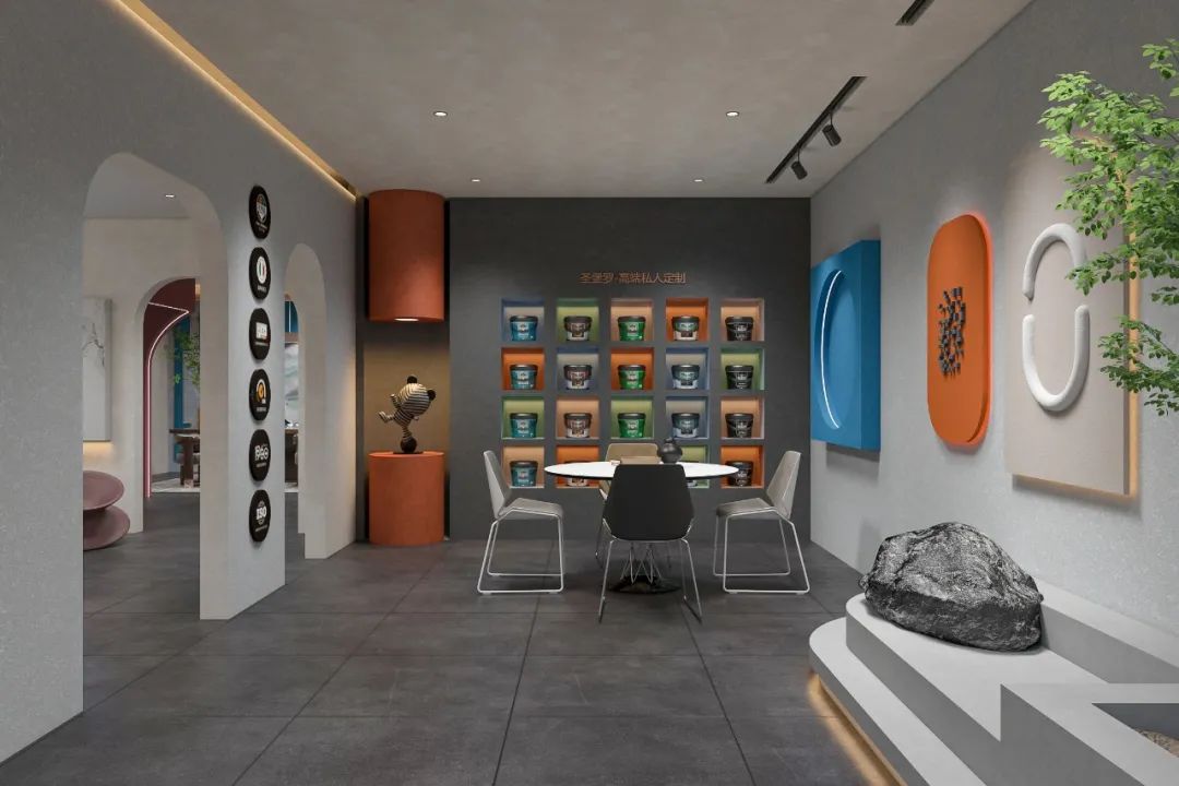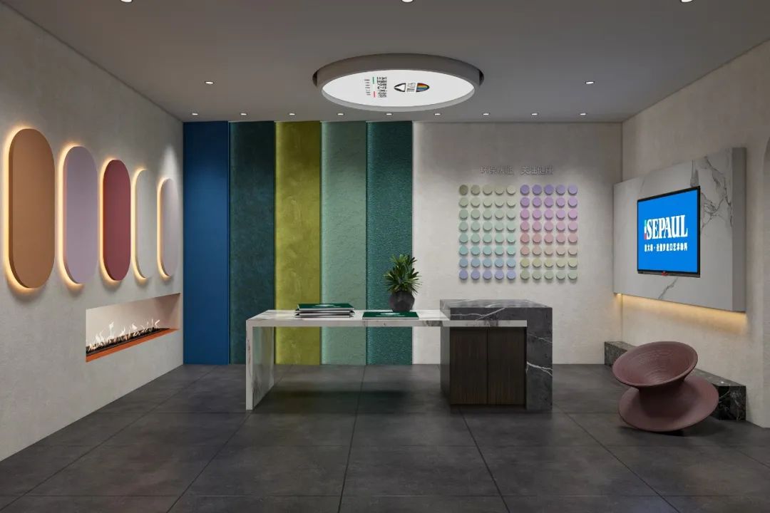 在布局上,赫章店延续圣堡罗进口艺术漆展示中心一贯的风格,秉承“非精品不展示”的设计理念,精选多种样板展品,完美地融入情景展区中,置身展馆中,每一步都有不同的视觉感受及灵感绽放。在优雅舒适的展馆中,轻松发现您所寻找的一切。
