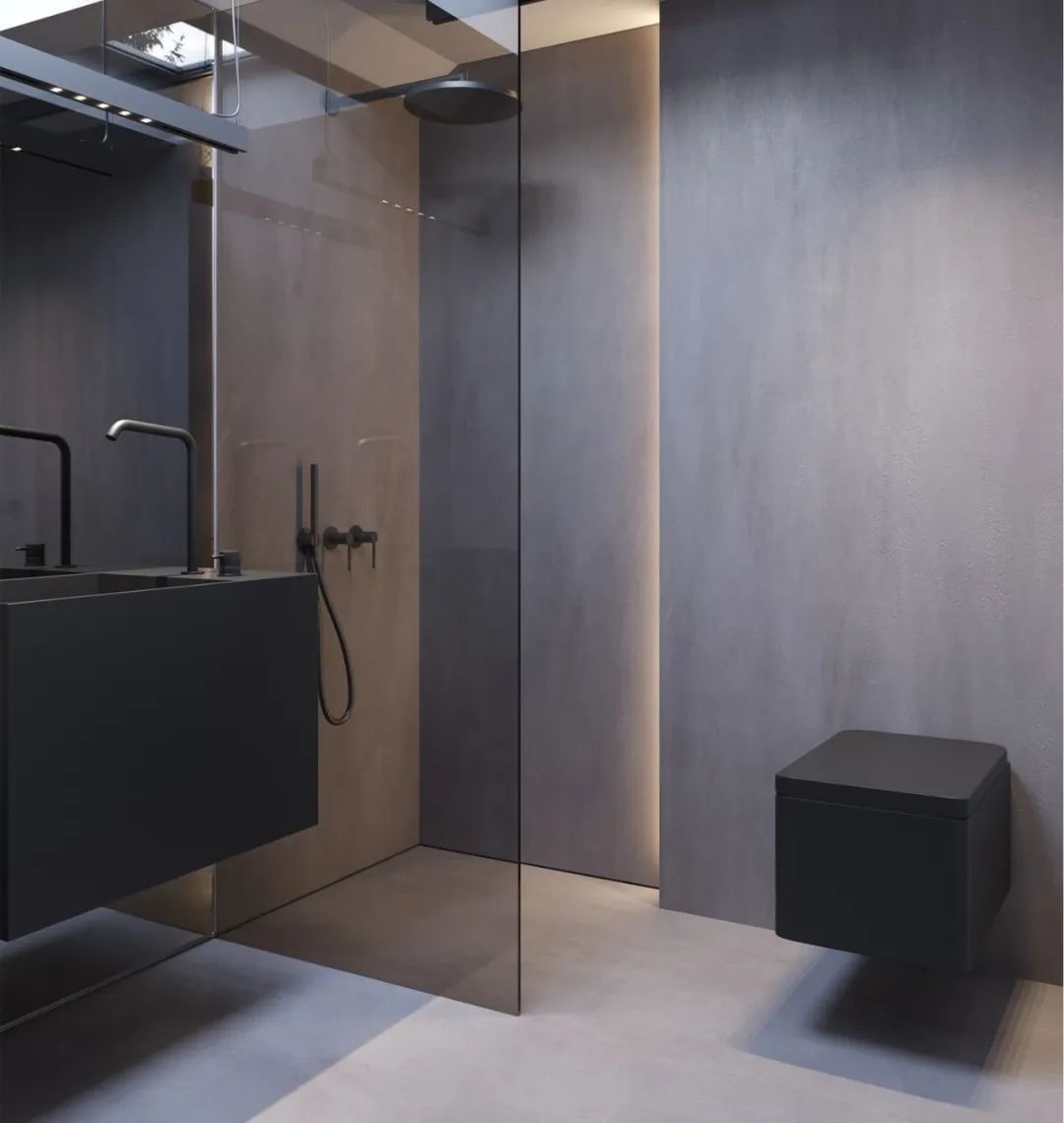 无论是做无缝地面,还是一些墙面和地面的无缝无踢脚线的设计,包括厨卫的一体化的墙面设计,以及卫生间湿区以及天花板,都可以使用。